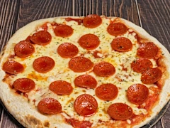 Masa fresca, salsa de tomate especiada, mozzarella 100%, extra de pepperoni y orégano
